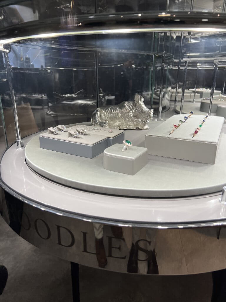 The evening was in aid of Rhino Dehorning programs in Africa for the incredible Care For The Wild foundation, this was a truly full circle moment for Steve with him having been a Trustee for CFW for over 10 years and specifically working with rhinos. We donated a small baby rhino sculpture in solid silver which complimented the Boodles jewellery amazingly. We were overwhelmed that the sculpture was well received and was bought at auction for a very generous bid, raising some great funds for an even greater cause.